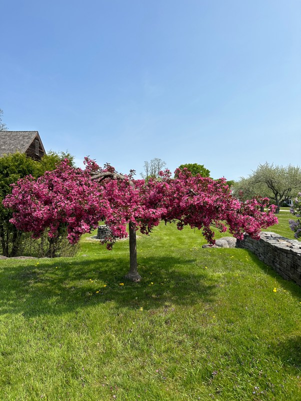 Apple blossoms are here too. Dark pinks or hardly pink regardless they will slay you.