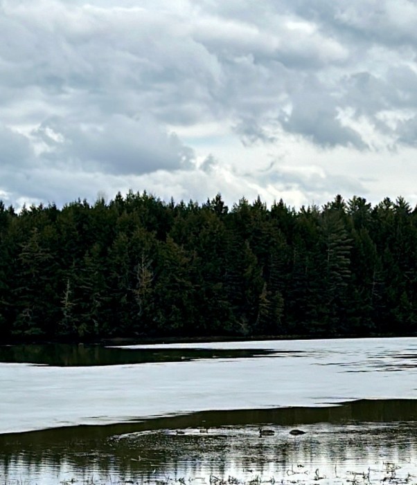 Despite the lingering snow, the geese and ducks have made their sojourn back to the wet fields and open lakes, another visual that Winter although holding on is in fact broken. They eye me as I run past and I nod, giving the signal I am not a threat but just another creature on this spinning globe. They honk and paddle away in disagreement.