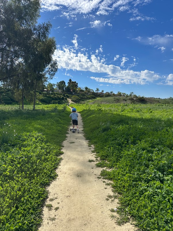 There is a ball that he’s particularly fond of because he can kick it so high with ease. Like straight up into the sky. He’s a big fan of the sky too. Can spot the moon no matter the time of day or if it’s thin sliver barely waxing its way back to visible. Planes and helicopters and hawks and hummingbirds are equally part of our banter as we adventure together. Looking always. Mostly up too. So so so much looking up. Seeing clouds as they follow us here and there.