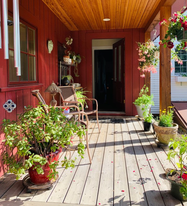Welcome to our favorite morning spot. With early sunshine and warm breeze, we watch the hummingbirds visit the fuchsia and the robins find their worm, chat about the day ahead and sip our brew. Everything feels easy while outside on a June day. And right about now, as the US of A is beginning to open back up, perhaps we can let go some of the fear and stress of the last 15 months. Easy is all that I need.